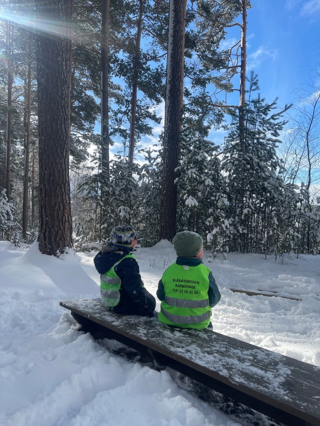 Vi ønsker at barna i Blåbærskogen skal være mye ute, både i barnehagen og på tur. Vi ser at barnas lek endrer seg når de forflytter seg fra lekeplassen og inn i skogen. Barna utnytter det rike mangfoldet i naturen og de stadige forandringene som naturen byr på, og inkluderer dette i leken. Naturen gir en naturlig og variert invitasjon til lek og utforskning. Her kan barna utfolde seg både motorisk og kreativt. Skogen er den perfekte lekeplass, da den har utfordringer for barn i alle aldre. Naturen innbyr til risikolek. Gjennom risikolek lærer barna å vurdere risiko og de lærer om egne grenser og begrensninger. Dersom de ikke lærer dette som barn kan de ende med å ta for store sjanser når de blir eldre. Risikolek er lek som barna oppsøker selv, fordi de har lyst, det er gøy og de opplever både spenning og mestring.
